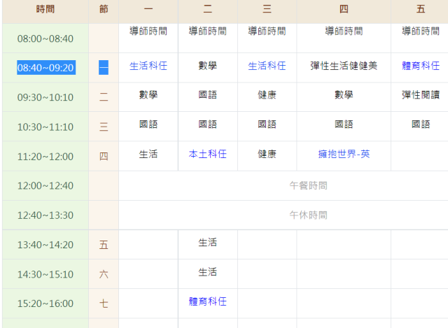 功課表