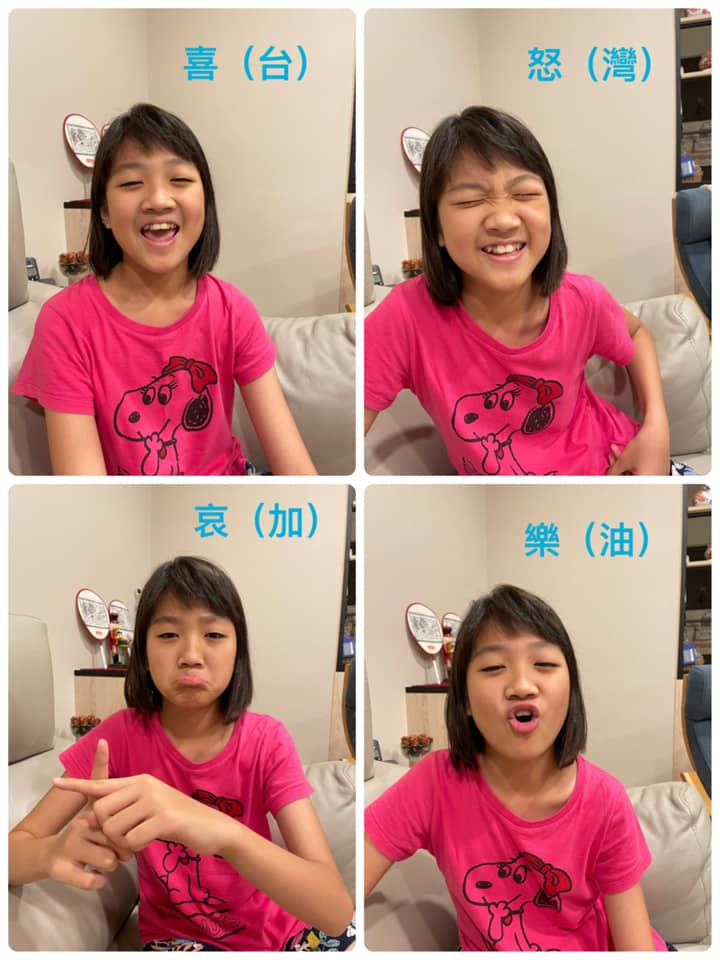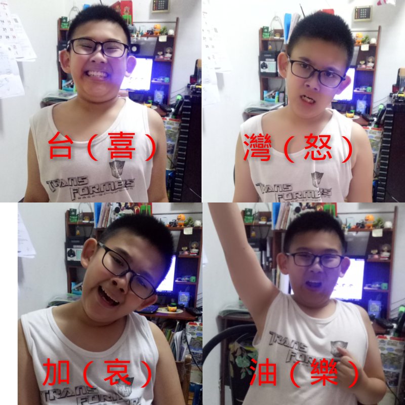 請搭配喜怒哀樂的表情,配上「台、灣、加、油」四個字的嘴形,將你的照片上傳本篇留言區,嘴型要按照順序來,但表情可不按照喜怒哀樂的順序,只要四種表情都有即可。