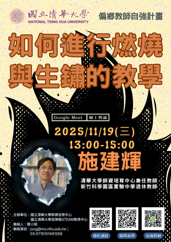 | 四、 | 為增進參與本計畫教師之交流及對於教材教法和學科知識之提問討論,本校亦建立Line群組及開設提問表單(如海報QR Code),歡迎自由加入及提問。 |